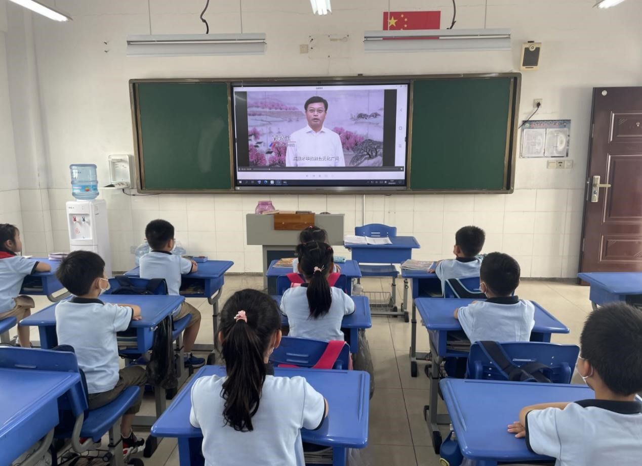 图为敬文教育集团崇道小学在集中收看中共江苏省委常委、苏州市委书记曹路宝的开学寄语视频。