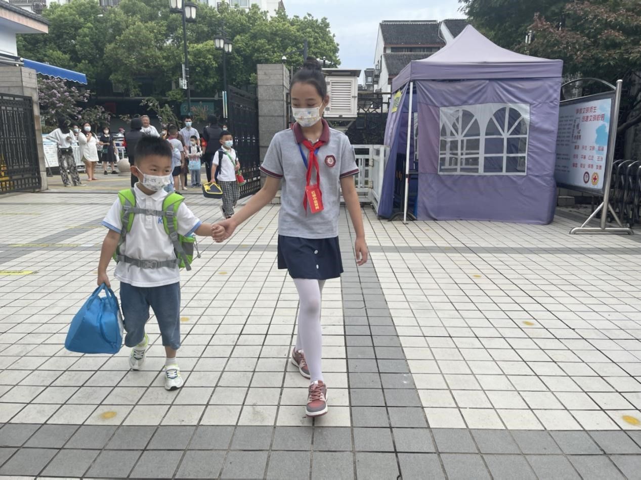 图为敬文教育集团学士中心小学开展主题为“大手拉小手,相伴共成长”第一课活动。大手牵小手,文明齐步走。