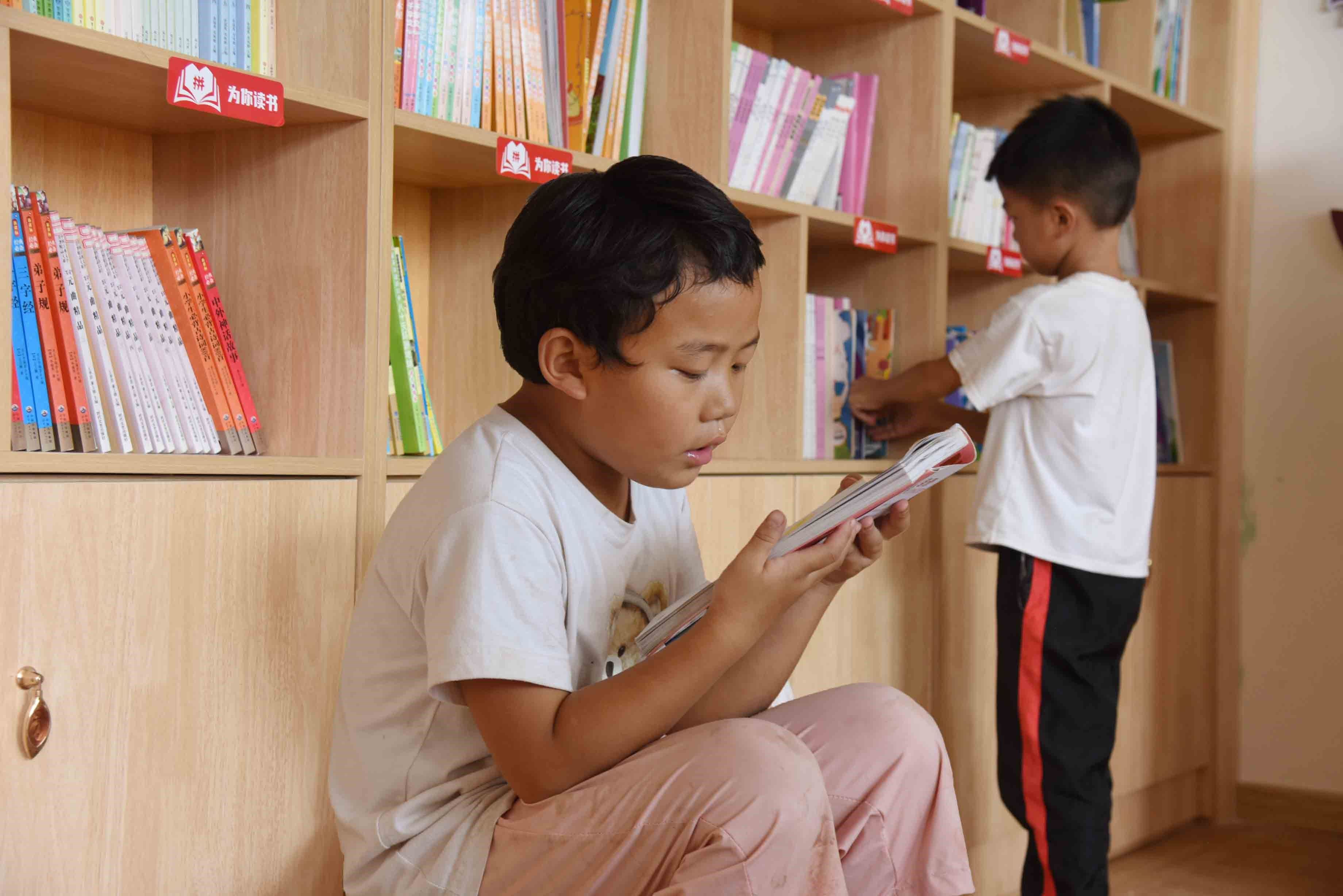 (同学们在图书室阅读爱心企业捐赠的图书。 摄:王梦楠、董旭)