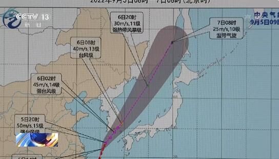 中央气象台预计,“轩岚诺”将以每小时20到30公里的速度向偏北转东北方向移动,强度逐渐减弱,9月6日早晨到上午将登陆或擦过韩国南部沿海,之后进入日本海,向东北方向快速移动,并逐渐变性为温带气旋。