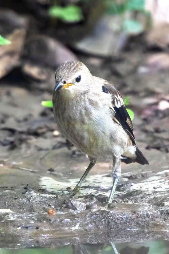 3日下午,丁骞又一次来到瘦西湖小树林。不久,他看到有一只鸟儿在小树林的水塘里喝水,于是摁下了快门。最初,丁骞以为,他拍到的这只鸟,是扬州常见的丝光椋鸟。回到家后,他在电脑上整理图片时,却发现这鸟与丝光椋鸟不一样。