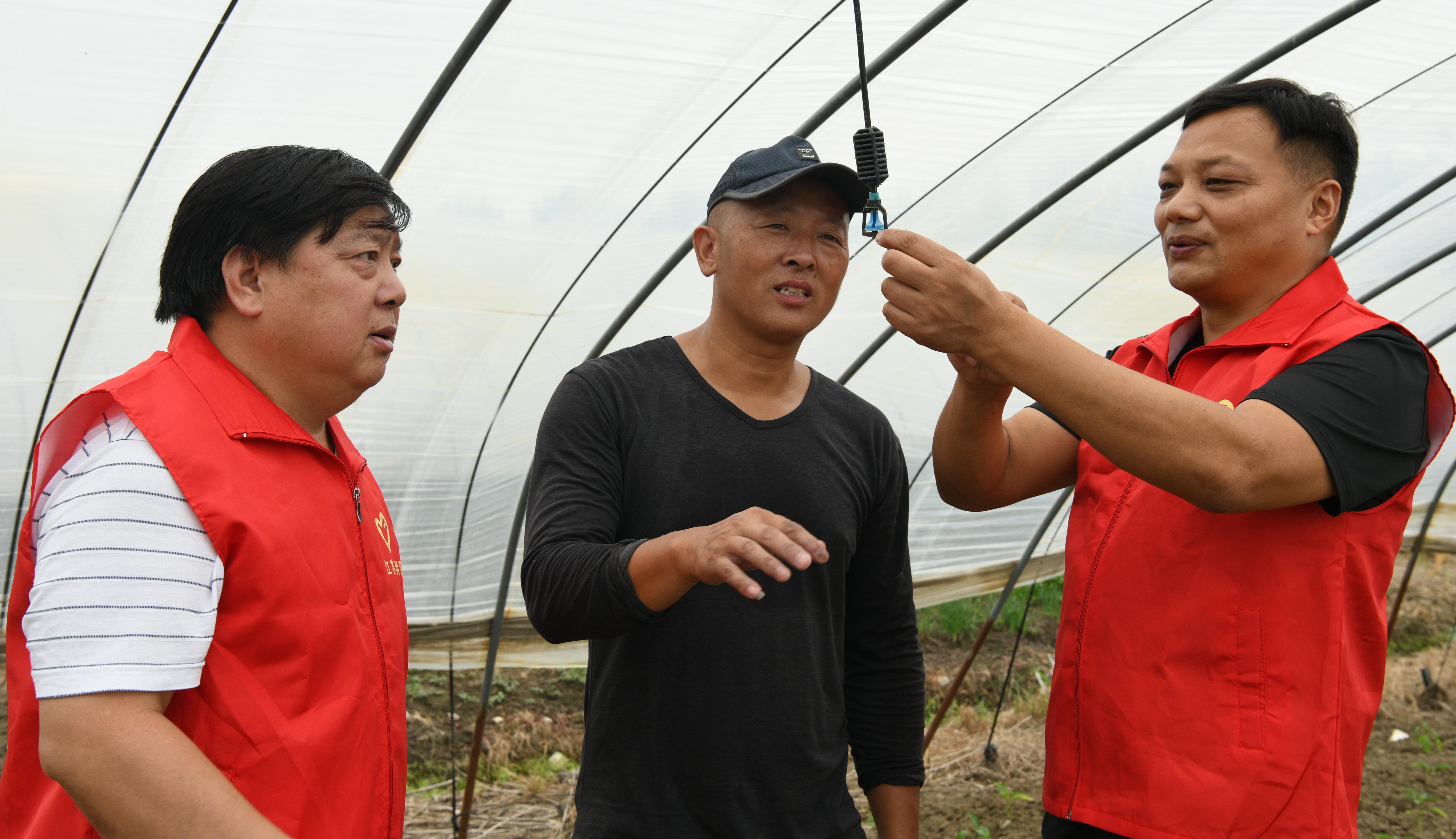 近日,淮安洪泽区东双沟镇一现代农业产业园,农机志愿服务人员指导农民使用水肥一体化机械装置。水肥一体化技术具有节水、节肥、节药、省工、增产、环保和改善农产品品质等优点,现已成为当地农业增产增效的“助推器”。