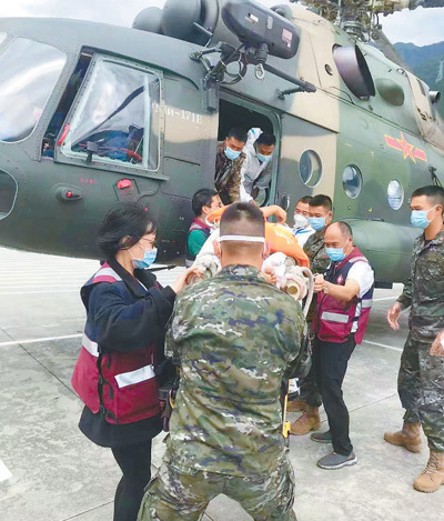 5日,武警四川总队1000多名官兵多路驰援震中。6日,武警四川总队多支救援力量继续深入泸定县磨西镇共和村、磨子沟村、咱地村等多地转移受灾群众。截至6日16时,武警四川总队官兵共抢通道路2.9公里,搭建简易便桥4座,疏散转移群众1855人,救治伤员274人,医疗巡诊1300余人次,搜救被困人员37人,排查民房700余间,搭建帐篷528顶,搬运物资81吨,环境消杀1.5万平方米。