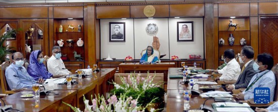 9月4日,在孟加拉国达卡,孟加拉国总理哈西娜(中)出席孟中友谊八桥启用仪式。新华社发