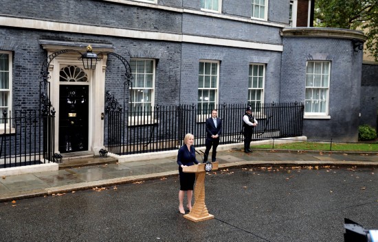 9月6日,在英国伦敦唐宁街10号的首相府,新就任的英国首相伊丽莎白·特拉斯(前)发表讲话。新华社 图
