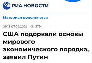 俄新社:普京称美国破坏了世界经济秩序的基础
