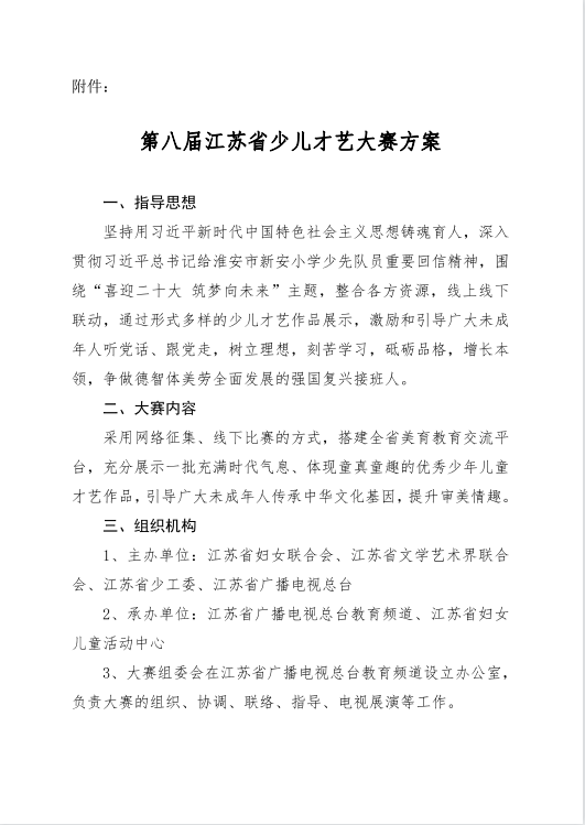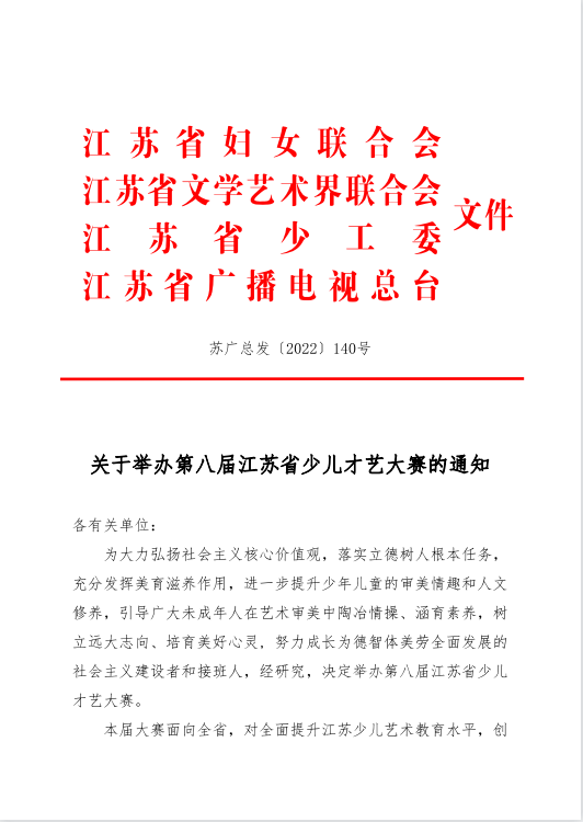 江苏省少儿才艺大赛是省内规模最大、级别最高的少儿才艺展示活动,该项赛事已经成功举办了七届,大赛落地全省13个设区市,累计超30万选手,3000多家幼儿园、中小学、青少年宫、艺培机构参加比赛,成为全省少年儿童才艺展示的舞台,美育教育的交流平台。