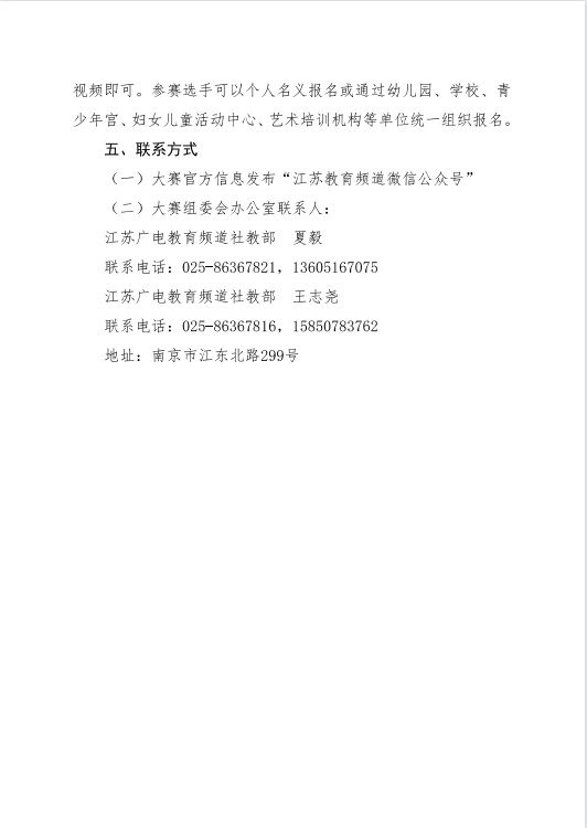 参赛选手可以个人名义报名或通过幼儿园、学校、青少年宫、妇女儿童活动中心、艺术培训机构等单位统一组织报名。