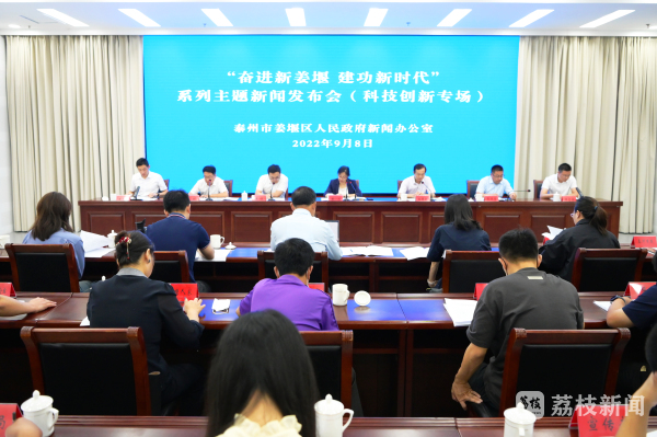 9月8日,泰州市姜堰区举行“奋进新姜堰 建功新时代”系列主题新闻发布会——科技创新专场,介绍近年来该区科技创新、人才工作等方面的成就,以及未来五年和今后一段时期的目标任务和重点工作。会上,姜堰区科技局、组织部、发改委、工信局、开发区(三水街道)、高新区(罗塘街道)分别介绍相关情况。