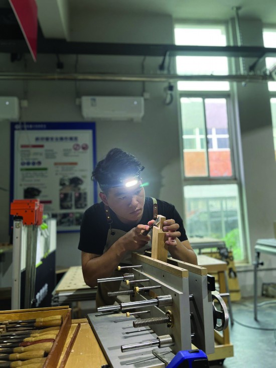 2019年,扬州选手吴晋卿在第45届世界职业技能大赛家具制作赛项中首夺银牌。“他是我的师兄,也是我现在的导师。”唐兴瑞自豪地说,他真正全身心投入训练,是从三年前来到扬州开始的。接过师兄技术传承的接力棒,他更加刻苦锤炼技法,技能得到整体提升,逐渐从“小木匠”蜕变为“大工匠”,如今一举拿下全省第一,也圆了自己多年前种下的“匠士梦”。