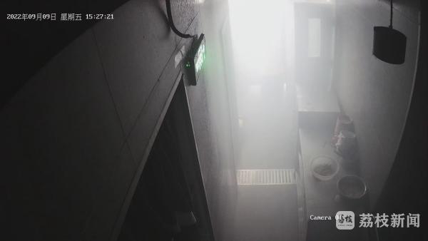 此时,高温烟雾触发了厨房内的自动喷淋装置,喷淋打开后,在过道与厨房之间形成了一道灭火屏障,有效阻止了烟雾与火势向过道蔓延。当消防员抵达现场后,火势已被消防喷淋设施扑灭,随后消防救援人员铺设水带,使用消防水枪对起火部位进行冷却降温,防止复燃。