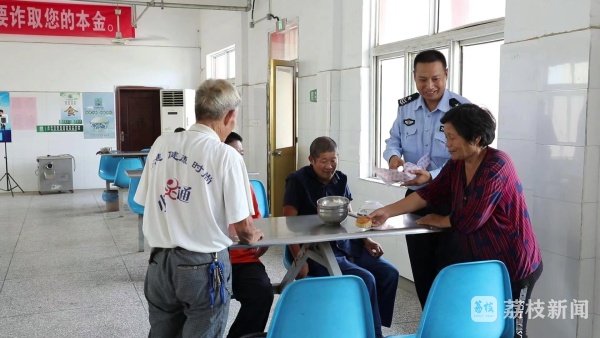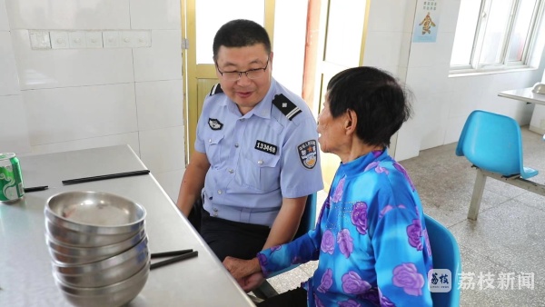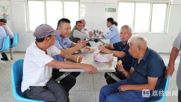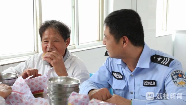 敬老院的食堂里,民警们将拎来的几十包新鲜的鱼和肉放下,又将一包包月饼送到每位老人的手上,收到礼物的老人们一个个笑得像个孩子似的,拉着民警们的手不让走。