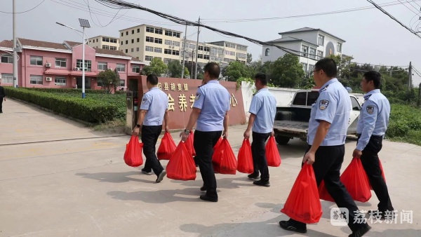 “快点,老人们该等着急了!” 四中队中队长赵祥国催促着。 准备完毕后,四中队的民警们便驱车赶往沭阳县胡集敬老院,看望这里的五十多位老人。