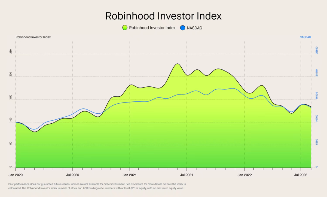 值得注意的是,在推出Robinhood投资者指数的同时,该公司还公布了该指数与纳斯达克指数自2020年初以来的表现对比。