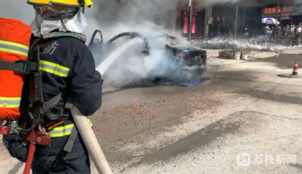 消防救援人员立即组织疏散周边人员,同时出动两支水枪,对轿车着火点进行火势打击。经过约10分钟的奋力扑救,现场明火已被控制。为防止复燃,消防救援人员对车辆车头以及油箱等重点部位使用消防水枪进行冷却降温。
