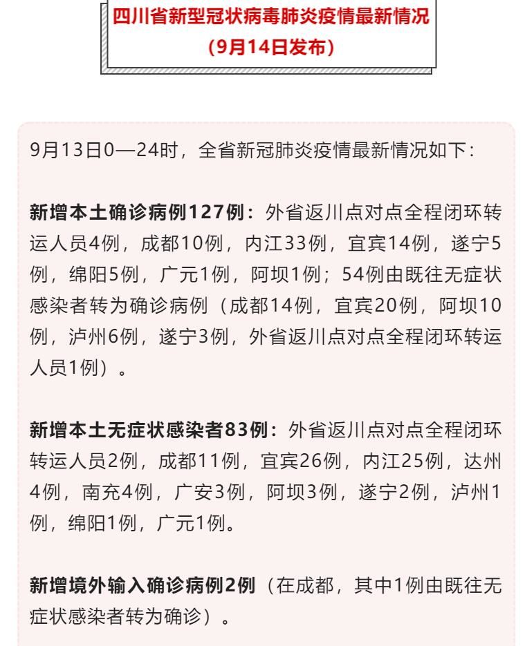荔枝新闻讯 据四川省卫健委官方微信消息,9月13日0—24时,四川省新冠肺炎疫情最新情况如下:
