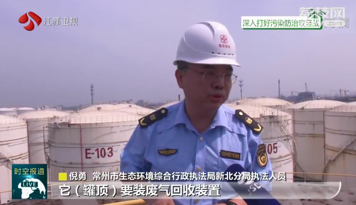 常州市生态环境综合行政执法局新北分局执法人员倪勇说:“不允许随意排放,罐顶要装废气回收装置。”