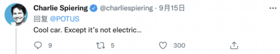 美媒记者也加入到评论的行列,美国保守派媒体“布莱巴特新闻网”记者查理·斯皮林评论称,“这车真酷,除了它不是电动汽车”。↓