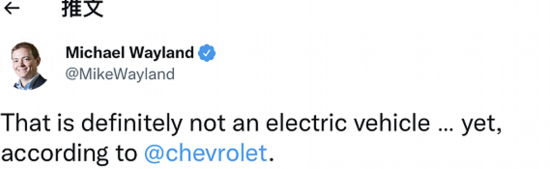 美国全国广播公司财经频道汽车记者迈克尔·韦兰称,“这绝对不是一辆电动车,根据雪佛兰的说法”。↓