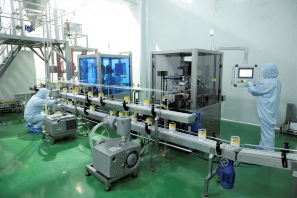 ↑工作人员在哈萨克斯坦南部城市图尔克斯坦的驼乳粉加工厂操作设备(2022年8月13日摄)。中国企业在图尔克斯坦投资建成驼乳粉加工企业,哈萨克斯坦金骆驼集团有限公司生产的骆驼奶粉顺利进入中国市场。