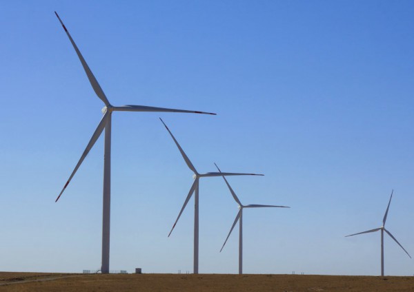 ↑哈萨克斯坦札纳塔斯风电场风机(2022年9月13日摄)。札纳塔斯风电场是中哈合作的中亚最大风电项目,对改善哈南北电力供需不均的状况具有重要战略意义。