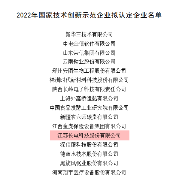 近日,国家工业和信息化部公示了2022年国家技术创新示范企业拟认定名单,全国65家企业入选,江苏省共有4家企业,江阴市江苏长电科技股份有限公司位列其中。
