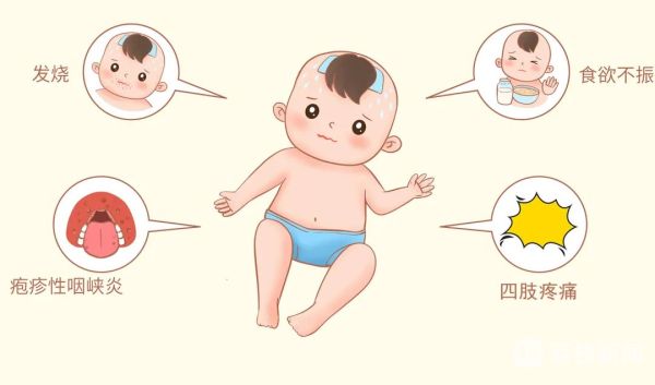 该病以急性发热和咽峡部疱疹溃疡为特征。在感染病毒2-4天后,患儿会出现突然发热、咽喉疼痛、食欲不振、头疼腹痛、四肢疼痛等,其口腔的咽喉上部会出现2-4mm的白色疱疹,四周绕有红晕,之后破溃为溃疡。