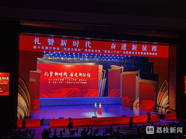 群星颂时代,繁花映征程。9月16日晚,由江苏省文化和旅游厅主办的“礼赞新时代 奋进新征程”——第十五届江苏省“五星工程奖”颁奖仪式暨“喜迎二十大”主题群众文艺巡演首场演出在江苏大剧院隆重举行。