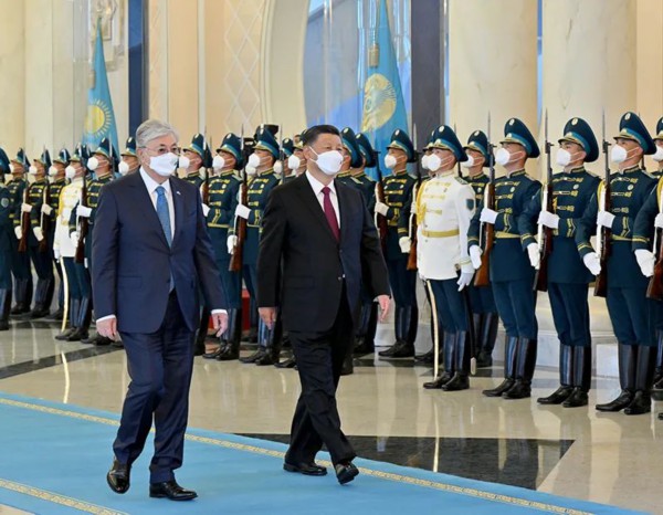 2022年9月14日,国家主席习近平出席哈萨克斯坦总统托卡耶夫在总统府举行的隆重欢迎仪式。新华社记者 岳月伟 摄