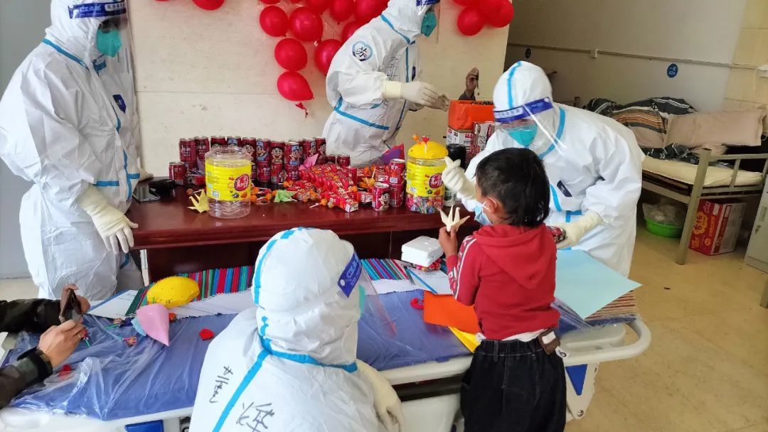“9月1号,为了让舱内的小朋友感受到开学的氛围,我们给孩子们准备了笔、笔记本,还买了一些旺仔牛奶和棒棒糖,举办了云升旗,当国歌奏响的时候,舱内的家长还有孩子们,包括我们都是热泪盈眶的。”江苏省援藏抗疫医疗队队员郭苏颖说。