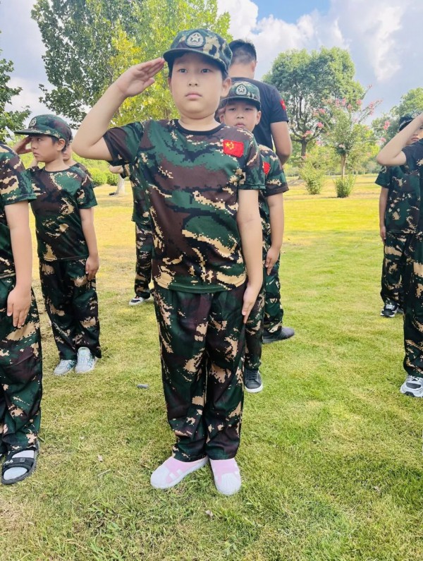 朝气蓬勃的学生们穿上帅气的军装,个个精神抖擞,意气风发,“小武警”初现模样。“稍息!立正!向前看齐!”宽敞的草坪上,洪亮的口号声此起彼伏。在教官耐心的指导下,学生们学习了敬礼、跨立和原地踏步等一系列军姿动作。