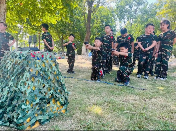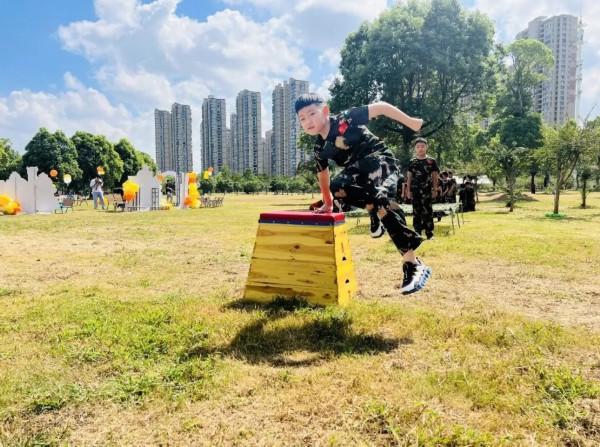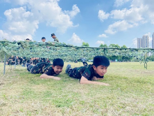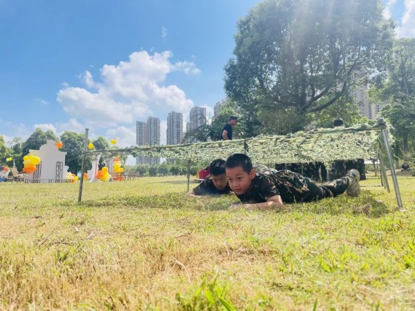 随后,教官带领学生们开展了丰富有趣的拓展活动。学生们在草地上匍匐前进,完成了跨越障碍、负重前行等挑战任务。汗水与艰辛,坚持与勇敢,每个学生都挑战了自我,磨砺了品格,在任务完成的那一瞬间都绽放出一张张自信的笑容。