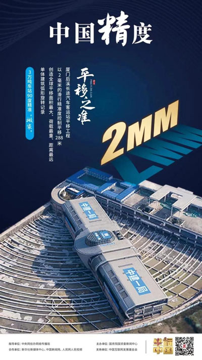 这是中国最大的单体建筑平移工程,也是世界上第一个长距离、大半径的建筑迁移:重达三万吨的厦门后溪长途汽车客运站实现90度最大移动半径达288米的“短途旅行”。