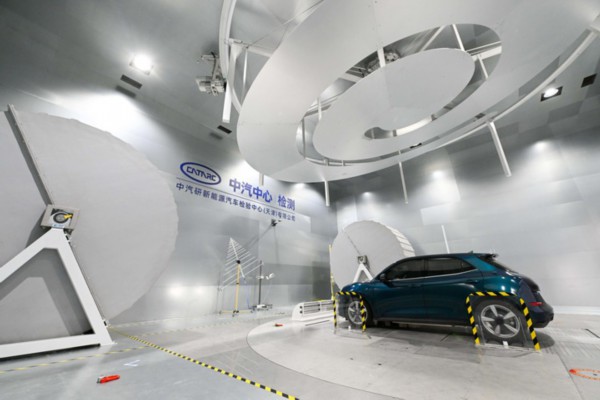 9月14日,在中汽中心新能源汽车科技创新基地电磁兼容部,新能源乘用车在混响室内接受抗电磁干扰检测。新华社记者 孙凡越 摄