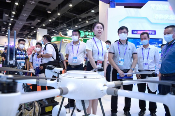 9月17日,参展商在介绍立体智能应急通讯系统。在广西南宁举行的第19届中国—东盟博览会上,高新科技产品引人关注。新华社记者 周华 摄