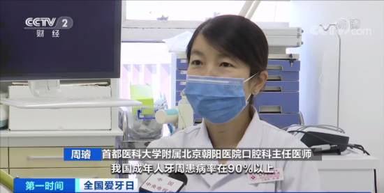 首都医科大学附属北京朝阳医院口腔科主任医师 周璿:我国成年人牙周患病率在90%以上,牙石检出率也在90%以上,牙龈出血率在85%左右,可以看出我国成年人的牙周问题是比较严重的。