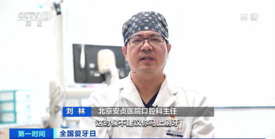 北京安贞医院口腔科主任 刘林:喝完碳酸饮料以后,牙齿表面有部分的脱矿,这时候不建议马上刷牙,可以喝一些白开水稀释和中和表面的酸性物质,大概过半小时左右再刷牙。