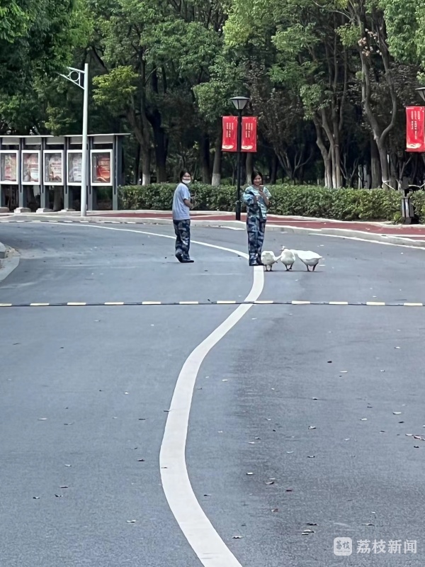 见到憨态可掬、雪白可爱的大鹅跟着她们,几名女生露出了笑容,纷纷拿出手机拍照,她也随手拍了一段视频。贾同学说,她在家的时候很少看见大白鹅,没想到在学校看见了,感到非常新鲜,有股回到家的感觉,陌生感瞬间消除,一下子让她融入到校园里。