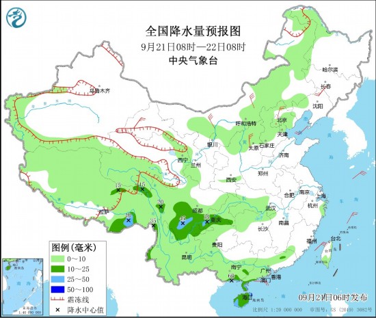中央气象台预计,21日至25日,四川、重庆、贵州云南等地多降雨天气,大部地区有小到中雨,四川、重庆、云南北部和西部、贵州北部和西部等地部分地区有中到大雨,局地暴雨。