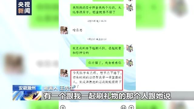 被害人 王先生:有一个晚上她就把她直播间里面的截图发给我,她意思就是说,有一个跟我一起刷礼物的人跟她说,他说如果帮她完成任务,就叫她做他老婆。然后她就把那个截图发给我,我当时也是想着,她在直播间受这种委屈,那我就去看一下,然后我就又进去看了。
