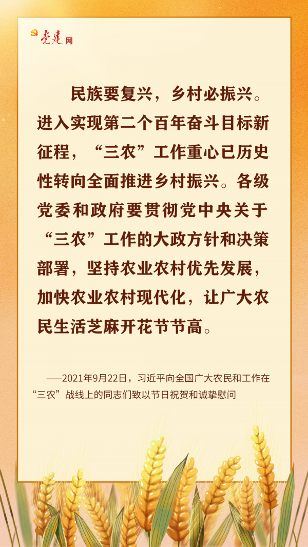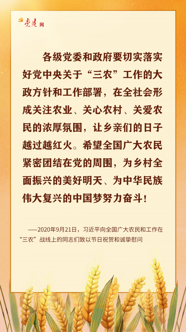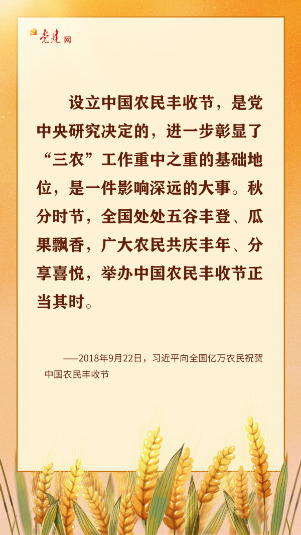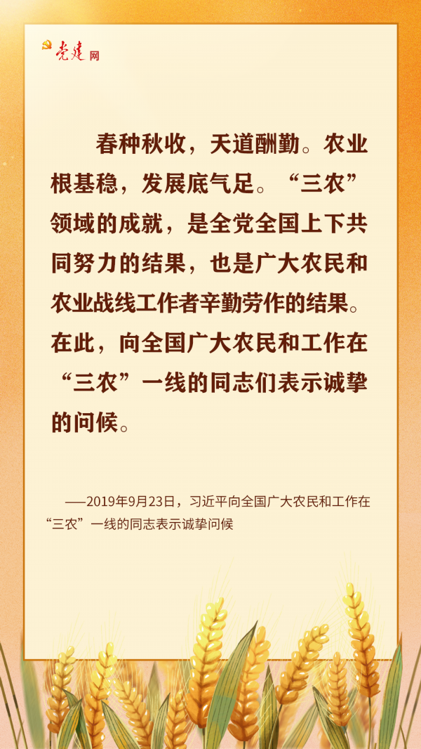今年9月23日是第五个“中国农民丰收节”,习近平总书记代表党中央,向全国广大农民和工作在“三农”战线上的同志们致以节日的祝贺和诚挚的慰问。习近平总书记高度重视“三农”工作,经常走入田间地头、捧起麦苗稻穗,与农民深情话家常。今天,党建网微平台与您一起在习近平总书记的重要论述中感悟丰收的喜悦。