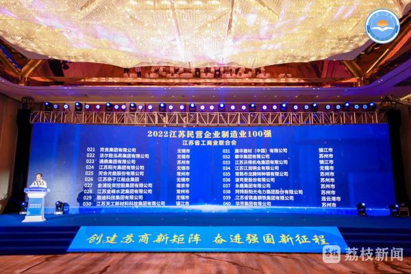 当天,江苏省工商联还与江苏省科学技术发展战略研究院联合发布“2022江苏民营企业创新100强”;与江苏省生态环境厅联合发布“2022年度绿色发展领军企业”。民营企业创新100强中,电子信息、先进制造与自动化、新材料、生物与医药4个行业入选企业数较多,规模超百亿元的有16家,50亿元以上的有32家,有49家企业或其母公司及子公司列入省级创新型领军企业培育库,有58家获得过国家或省科学技术进步奖,有67家企业参与或主持过国家标准或国际标准的制定,在行业内具有较强的影响力和带动性。