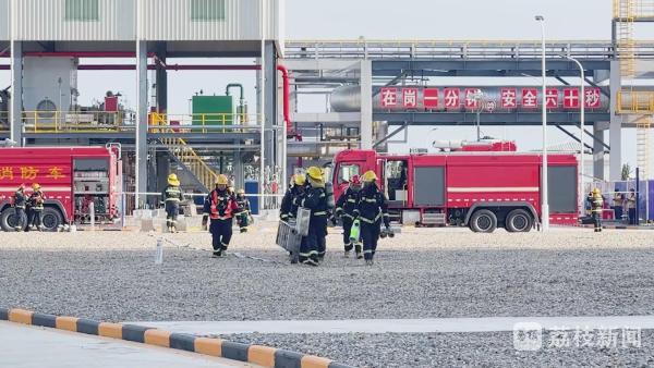 下午3时,现场模拟液化天然气储罐罐前平台泄漏应急演练,19辆消防车、110余名指战员及单位员工实兵实装开展应急演练,充分检验应急预案的可操作性和科学性。