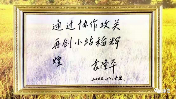 在2018年的小站稻推介会上,年近九旬的袁隆平专程发来贺信,为小站稻“打call”:小站稻历史悠久,稻米清香可口、回味甘醇,深受消费者喜爱……