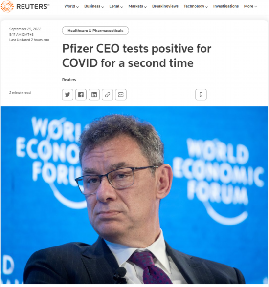 据路透社消息,美国辉瑞公司首席执行官 (CEO)艾伯乐当地时间24日表示,他的新冠病毒检测结果呈阳性。