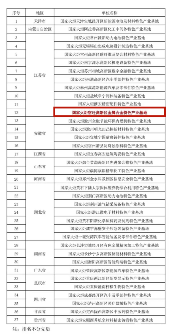近日,科技部火炬中心公布2022年国家火炬特色产业基地名单。作为本次全市唯一入选的国家火炬特色产业基地,宿迁高新区金属合金特色产业基地榜上有名。