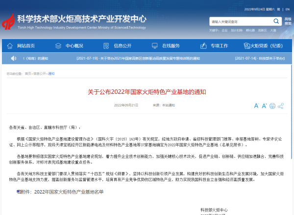 2022年国家火炬特色产业基地名单
