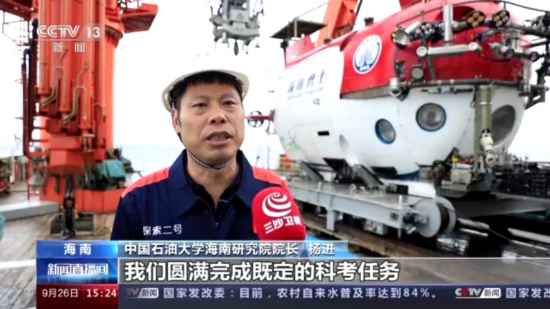 中国石油大学海南研究院院长 杨进:我们圆满完成既定的科考任务,不仅进行了国产化深海装备的功能测试,获取了宝贵的工程数据和原位样品,同时也在冷泉区进行探测,是认知海洋、经略海洋、落实海洋强国战略的一次具体实践。