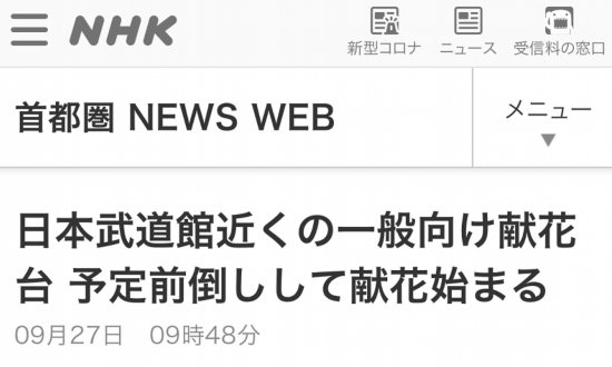 据日本广播协会报道,关于将于当地时间27日14时开始的日本前首相安倍晋三的国葬,日本政府在国葬会场附近设置的献花台于当地时间9时30分左右开始向日本民众开放,预计将于16时关闭。