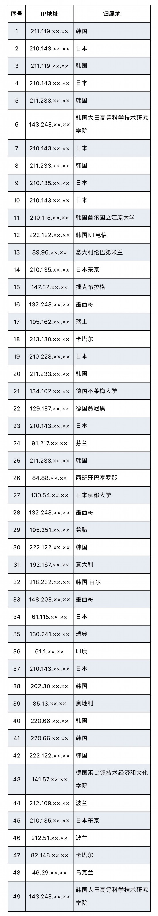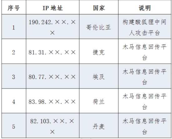 技术分析与溯源调查中,技术团队发现了一批TAO在网络入侵西北工业大学的行动中托管所用相关武器装备的服务器IP地址,举例如下: